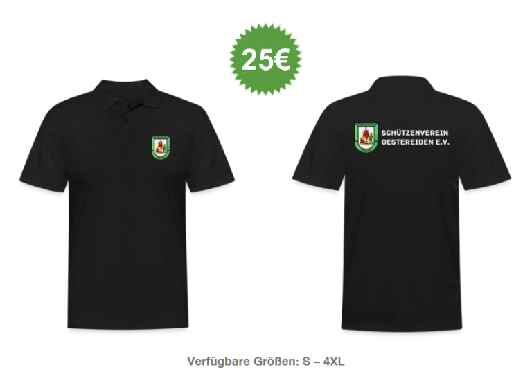 Ab März bietet der Schützenverein Oestereiden einen eigenen Shop an. Dort können Mitglieder, Freunde und Besucher erstmals das neue Vereins-Poloshirt erwerben, das bei Veranstaltungen und insbesondere zum Schützenfest getragen werden kann.